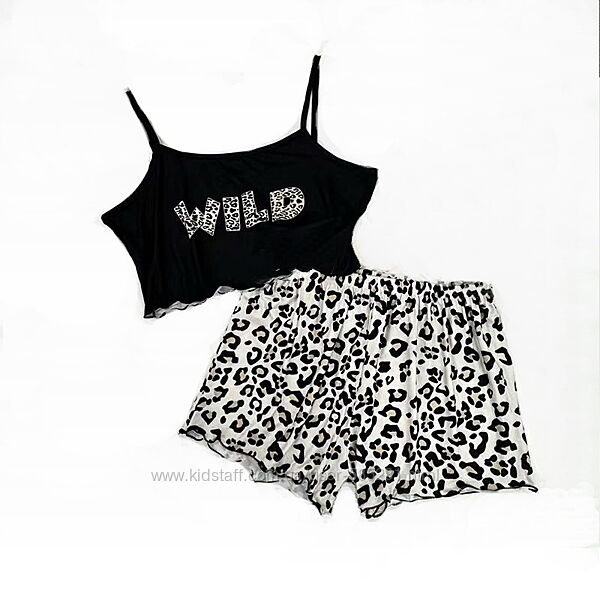 трикотажная пижама топ и шорты S-XL леопард wild