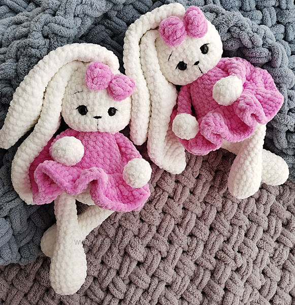 Зайка у рожевій сукні. Мяка вязана плюшева іграшка. В наявності.