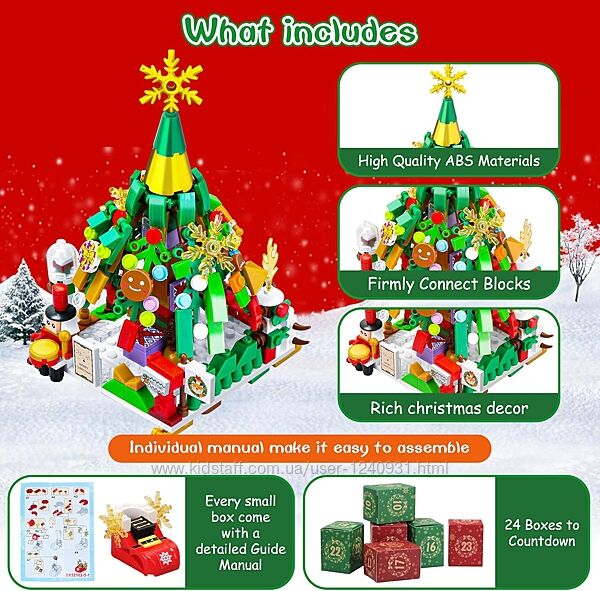 Подробное описание: Адвент-календар 2025 Різдвяна ялинка та вуличні будівельні блоки для дітей