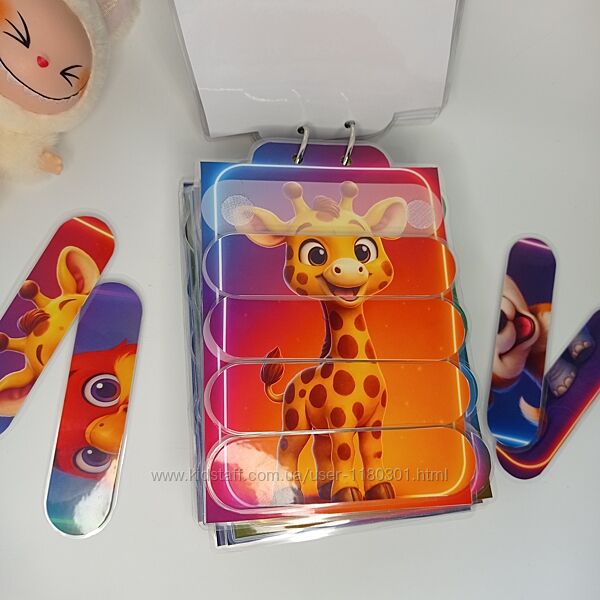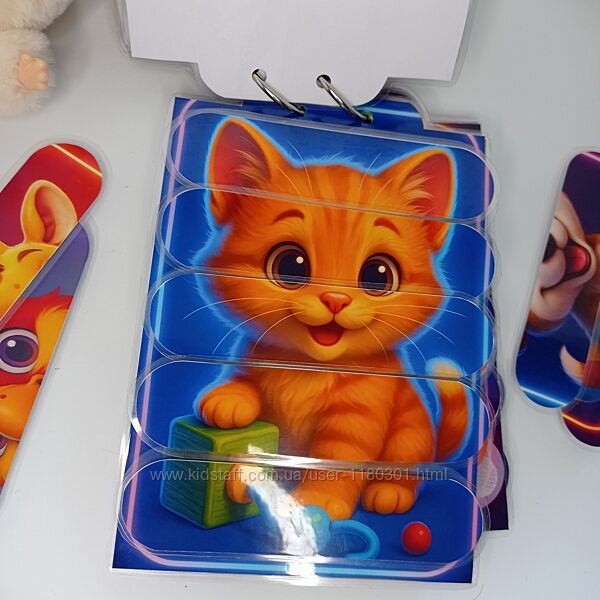 Смужки на липучкахЄ 14 сторінок із милими тваринками, кожна з 5 липучими смужками