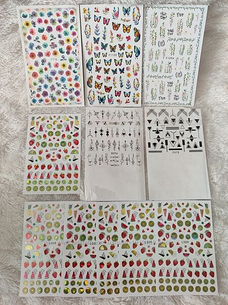 Наклейки для дизайна ногтей. Общее количество 66 шт - 60 слайдеров и 6 типсов для французского маникюра.Цена указана за все вместе! Новые.Пересылка после предоплаты - укрпочтой, новой почтой