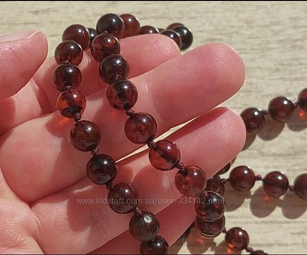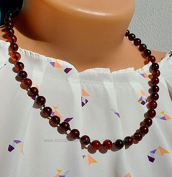 Подробное описание: Чарівне намисто із благородного бурштину вишневих відтінків, кульки 8 мм