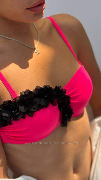 Не пропустіть можливість додати стилю та комфорту до свого пляжного гардеробу з нашим жіночим роздільним купальником малинового кольору!