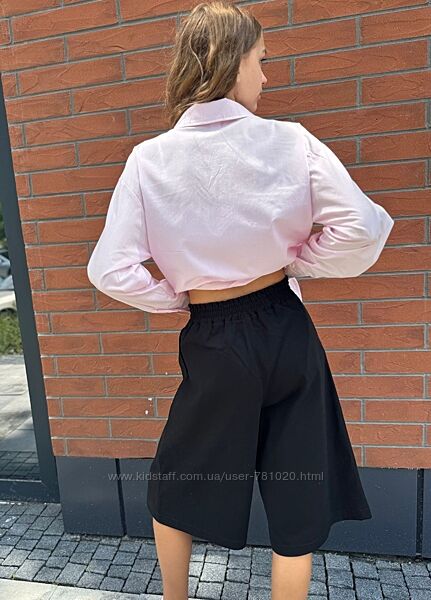 Бермуди чорного кольору з коттонової тканини – класичний вибір, який поєднує елегантність і комфорт. Ця модель ідеально підходить для осіннього сезону.склад тканини - 95% бавовна, 5% еластан