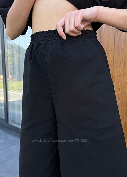 Прямий і вільний крій додає образу витонченості, а талія на резинці забезпечує ідеальну посадку для будь-якої статури. Тканина високої якості гарантує довговічність і збереження охайного вигляду навіть після багаторазового носіння.