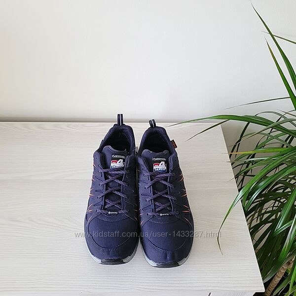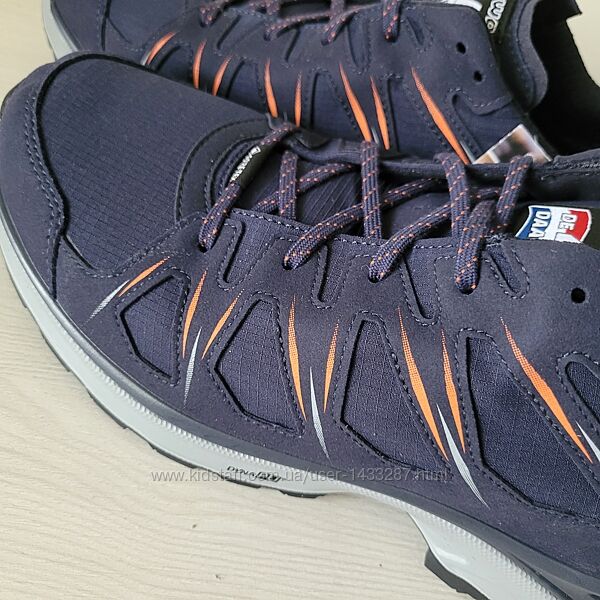 Верх текстиль + еко матеріали Мають мембрану Gore-Tex Носочки та п´ятка захищені та ущільнені Обідочки та язичок - м´якенькі Фісуються за допомогою шнірків БОМБЕЗНА підошва із надійним протектором Мають лямку на задніку для зручного взування Колір темно - синій Виробник Словаччина