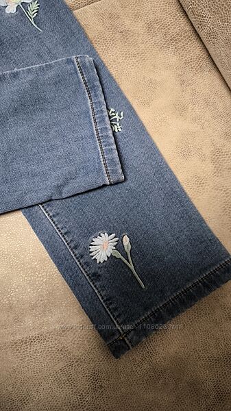 Джинси дуже гарної якості та з незвичною квітковою аплікацією. Купляли за кордоном, стан відмінний.Можу надати заміри, ще є на такий вік фірми GAP. Все носила одна дитина недовго.
