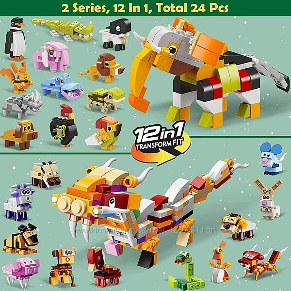 Представлений адвент-календар включає 24 вікна, що відповідають першим 24 дням грудня. Відкрийте віконце, що відповідає певній даті та насолоджуйтесь черговим сюрпризом, поки ви рахуєте дні до Різдва! Набір складається з 12-ти знаків зодіаку і 12-ти милих тваринок (дизайн не повторюється). Кожен комплект будівельних блоків має інструкцію зі збирання. Просто зберіть кожну серію з 12-ти будівельних деталей, які можна об´єднати в суперкороля дракона і слона відповідно. Усі фігурки, які можна зібрати, виглядають реалістично. Набір сприяє розвитку інтелекту, практичних здібностей та покращує взаємини між батьками та дітьми.Всі деталі виготовлені з ПВХ-пластику, екологічно чисті, ретельно оброблені та безпечні для дітей. Ідеальний різдвяний подарунок