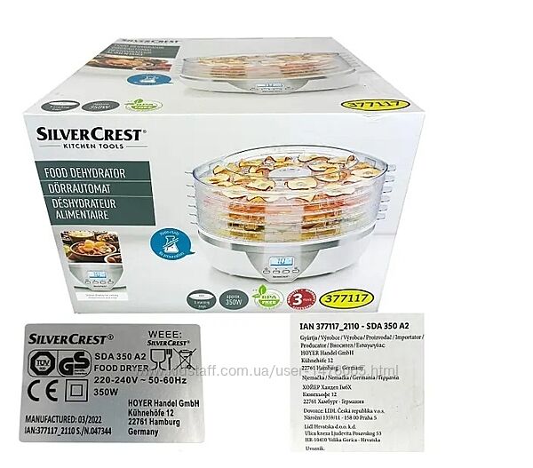 Подробное описание: Сушка для овочів та фруктів із Німеччини Silver Crest SDA 350 A2 гарантія