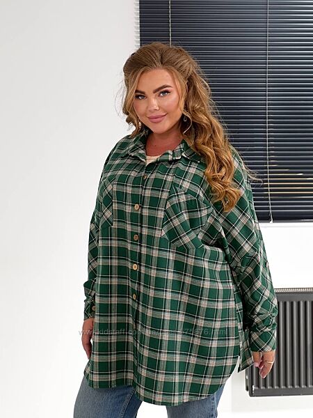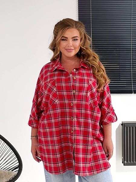 р.56 до 70р. Сорочка жіноча великі розміри турецька клітина, фланель