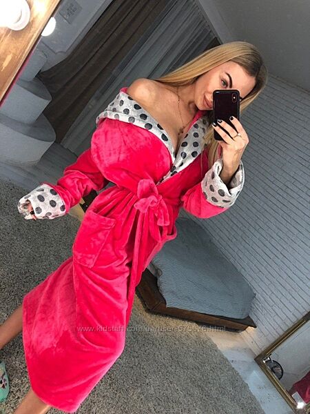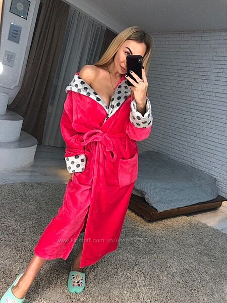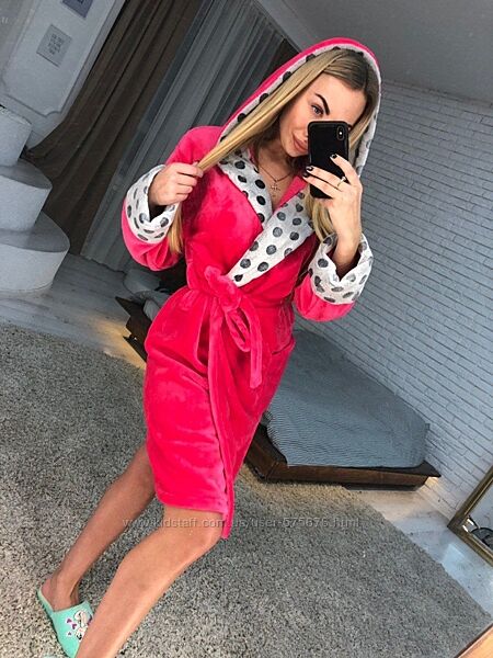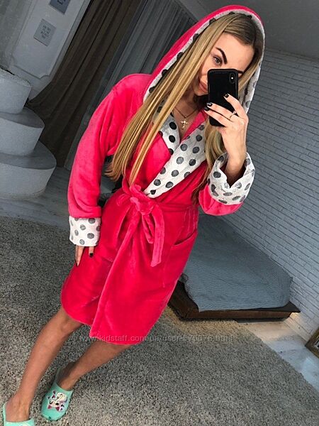 М´який затишний халатик з капюшономРозмір: універсал 42-46 за рахунок запаху, довгі підходять до 48 (під замовлення! халати з капюшоном хл(48-50) +50 грн, ххл (52-54) +70 грн!!!)