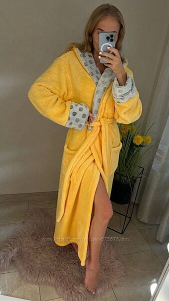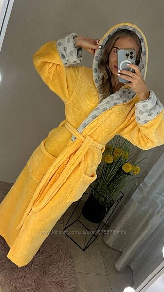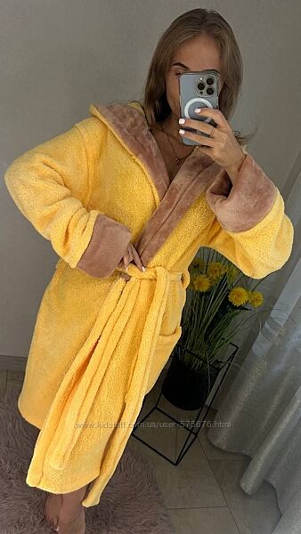М´який затишний халатик з капюшономРозмір: універсал 42-46 за рахунок запаху, довгі підходять до 48 (під замовлення! халати з капюшоном хл(48-50) +50 грн, ххл (52-54) +70 грн!!!)