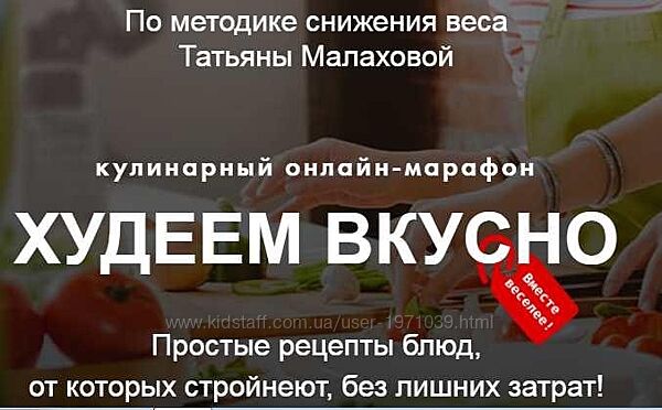 Худеем вкусно. Пакет Продвинутый (Татьяна Малахова) Количество уроков: 21 Формат: видео-уроки с подробной пошаговой инструкцией, которую сможет выполнить даже тот, кто никогда не готовил + Текстовый формат рецепта в каждом уроке + Уникальные материалы и подарки Бонусы: - Гликемический индекс продуктов; - Содержание белков, жиров, углеводов и клетчатки в продуктах; - Содержание жирных кислот в маслах; - Пищевые добавки "Е". В результате марафона: поймёте, как сбрасывать лишний вес с помощью правильного сочетанияипростых продуктовбез труда научитесь готовить множество вкусных и полезных блюдразнообразите рацион множеством новых кулинарных решенийперестанете ломать голову над тем, «что же приготовить сегодня»поймёте, что здоровое и полноценное питание может быть вкусным и разнообразнымначнёте новую жизнь без лишних килограммовЕсли вы хотите восстановить свое здоровье и обрести красивую и стройную фигуру - БЕЗ спорта и упражнений - БЕЗ диет и голодания - БЕЗ подсчета калорий - БЕЗ БАДов и таблеток Присоединяйтесь! Пакет "Продвинутый" 21 уникальных рецептов вкусных и разнообразных блюд: (7 завтраков; 7 обедов; 7 ужинов)Разнообразные дополнительные материалы, благодаря которым вы научитесь создавать свои вкусные и простые рецепты и узнаете все о полноценном питании7 рецептов десертов, от которых вы не поправитесь ни на грамм+ БОНУС №1: электронная книга «Праздник с эффектом разгрузочного дня»+ БОНУС №2: электронная книга «Дружественный пинок»
