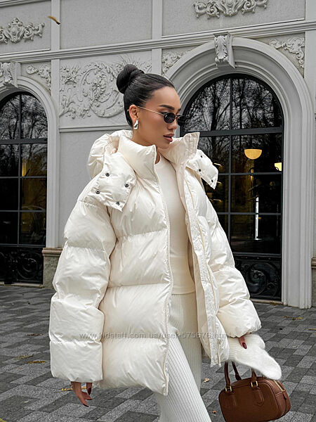 Стильна новинка зими 24/25 - пуховик оверсайз з об´ємним коміром та капюшоном. Моделі оверсайз не лише зігрівають, а й дозволяють легко комбінувати їх із багатошаровими образами. Прямий об´ємний пуховик - базова модель на кожен день. Глибокий зйомний капюшон, що фіксується кнопками із широким коміром-стійкю.