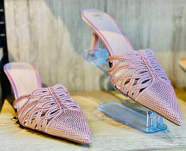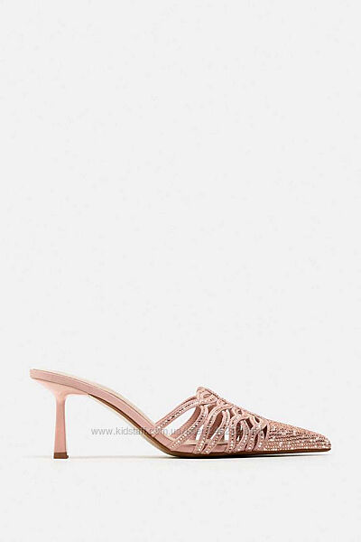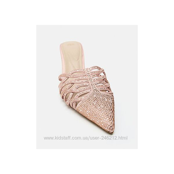 Шикарні туфельки мюлі від Zara!Дуже гарні, усипані стразиками, нереально красиво переливаються, фото не передає.