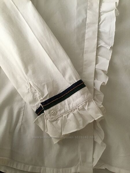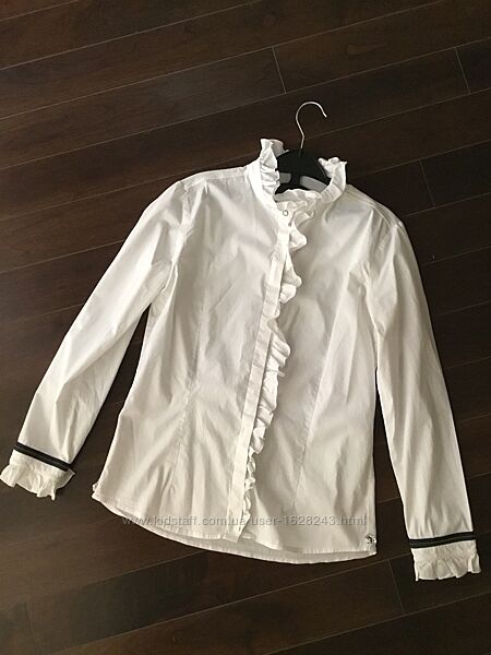 Біла бавовняна сорочка блуза до школи. Відомий італійський бренд Aletta , купували дорого в мережі Інвог. Шикарний фасон, вигідно носити з сарафаном, і з спідницею. Незвичайний крій - спинка цієї сорочки виготовлена з бавовняного легкого трикотажу (як футболка), по низу притаманні бренду квіточки.Розмір на 152, 12 років