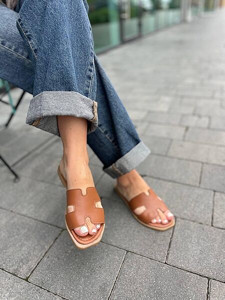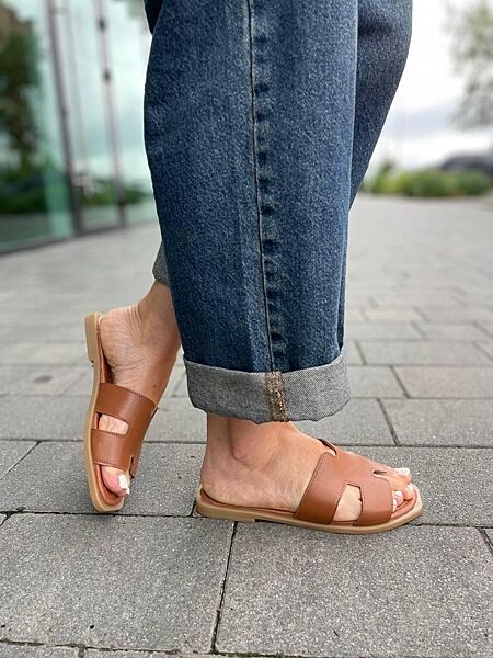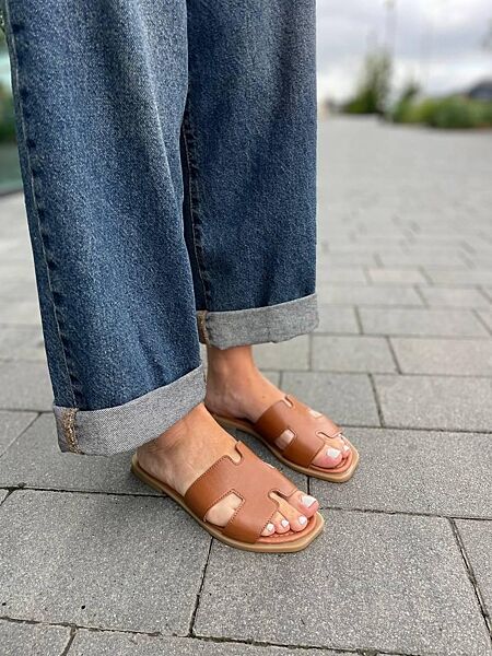 Подробное описание: Шлепанцы женские из натуральной кожи на плоской подошве коричневые Mermaid 2401 р. 36-40