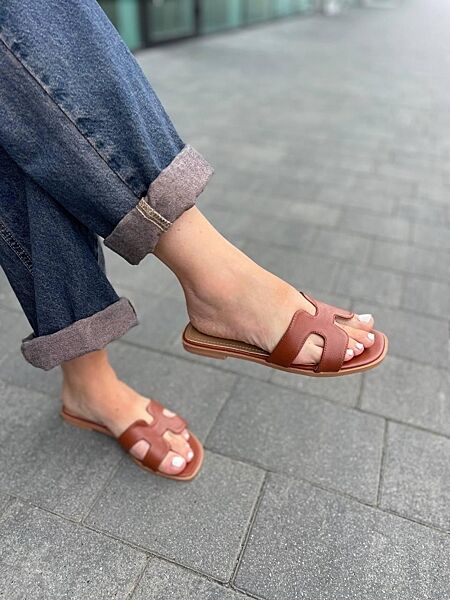 Подробное описание: Удобные шлепанцы эко-кожа на низком ходу коричневые классические женские MEIDELI C50-7 р. 36-41