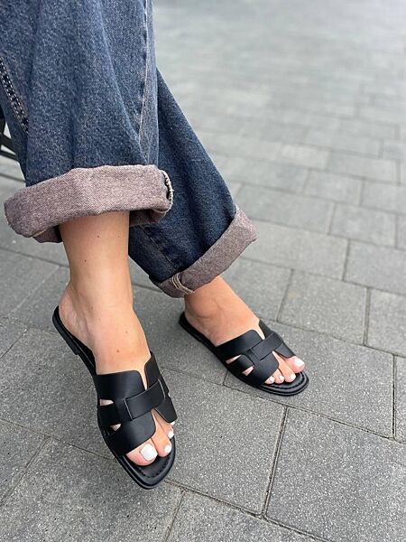 Подробное описание: Удобные шлепанцы женские из искусственной кожи черные на низком ходу YES MILE SF-16 р. 36-41