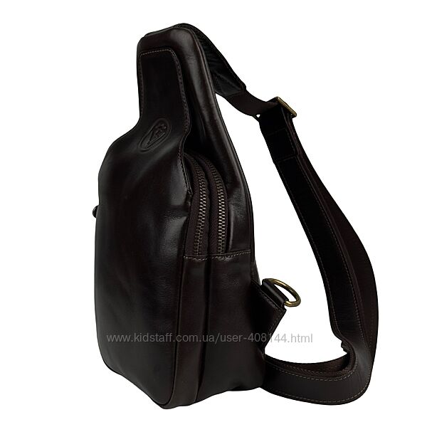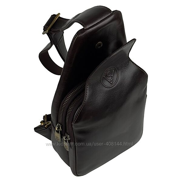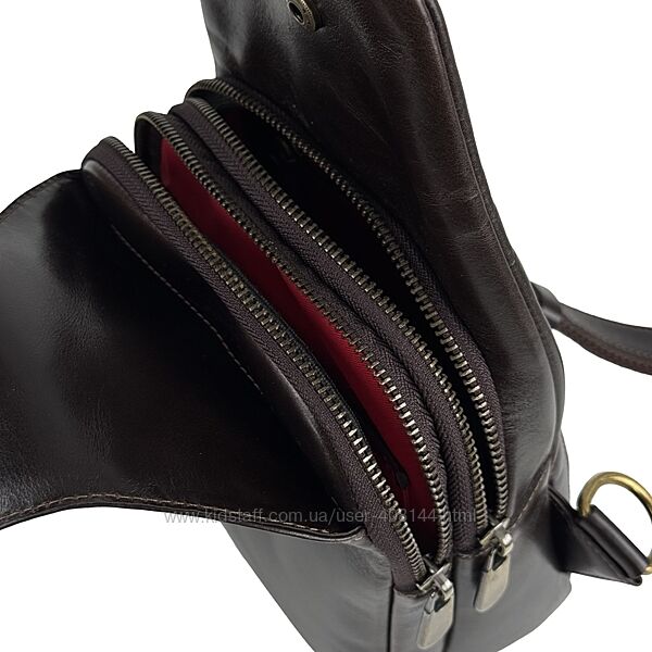 Практична чоловіча сумка-слінг. Сумка виготовлена з натуральної високоякісної телячої шкіри на блискавці, усередині на щільній тканинній підкладці. Дана модель є дуже трендовою цього сезону. Ідеально підходить для сучасної та активної людини, яка звикла почуватися стильно і в той же час комфортно. Слінг має два відділення на блискавці. Усередині одного відділення є кишеня на блискавці, усередині другого – звичайна кишеня. Ще один - розташований під магнітним клапаном та додатково кишеня на блискавці зовні на тильній стороні. Ремінь можна пристебнути на правий або лівий бік сумки і збільшити максимально до 125 см. Завдяки кільком відділенням сумка дуже містка.