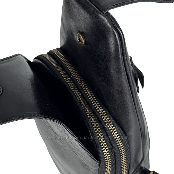 Практична чоловіча сумка-слінг. Сумка виготовлена з натуральної високоякісної телячої шкіри на блискавці, усередині на щільній тканинній підкладці. Дана модель є дуже трендовою цього сезону. Ідеально підходить для сучасної та активної людини, яка звикла почуватися стильно і в той же час комфортно. Слінг має два відділення на блискавці. Усередині одного відділення є кишеня на блискавці, усередині другого – звичайна кишеня. Ще один - розташований під магнітним клапаном та додатково кишеня на блискавці зовні на тильній стороні. Ремінь можна пристебнути на правий або лівий бік сумки і збільшити максимально до 125 см. Завдяки кільком відділенням сумка дуже містка.