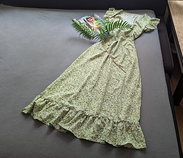 Без дефектів Збоку прихована застібка Тканина легка Довжина 123 см Пог 50 см + тягнеться Пот 41 см + тягнеться Пос вільно (58 см)