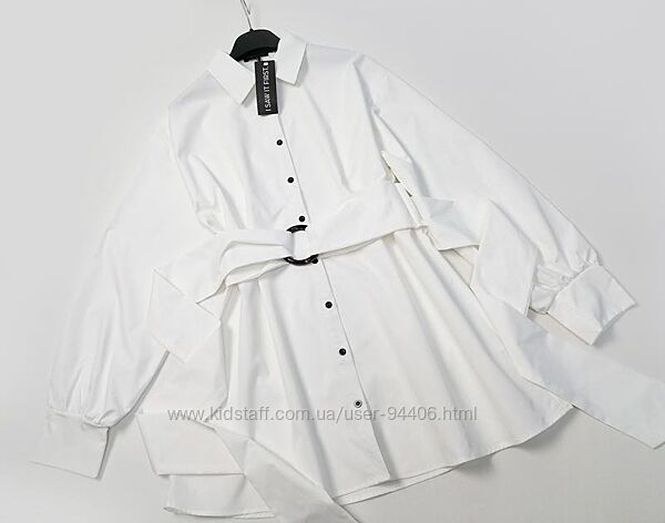 Белое платье-рубашка свободного кроя с поясом новое,размер С,за счет фасона подойдет и на М 95% хлопок Фасон свободный,ткань плотная,талия регулируется поясом ---- плечи спущеные 54 пог 57 пот 59 поб 68 длина 85 рукав 61