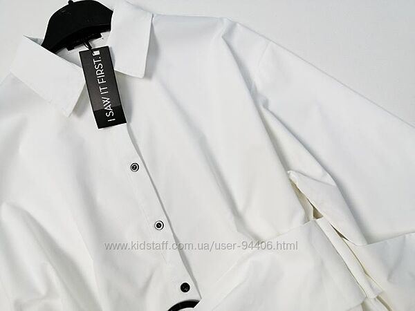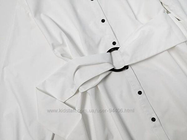 Подробное описание: Белое платье-рубашка свободного кроя с поясом