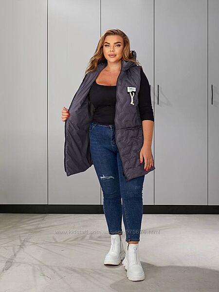 Подробное описание: р.50 до 68р. Жилетка плащівка стьобана на силіконі 150