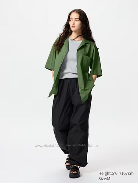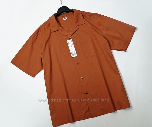 Свободная легкая рубашка шведка Uniqlo унисекс Унисекс-подходящая для мужчин и женщин новая,размер ХЛ - Свободный фасон. - Короткий рукав. - Застегивается на пуговицы. 53% Модал, 47% Хлопок ------------- плечи 57 пог 65 длина 80