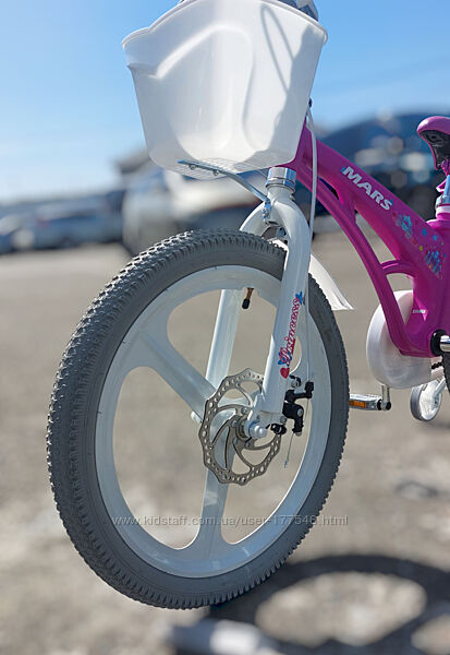 Магнієвий велосипед MARS оснащений переднім та заднім дисковими гальмами. До комплектації також входять: передній кошик, дзвіночок, переднє та заднє пластикові крила, підніжка та додаткові тренувальні колеса. Зручне регулювання сидіння дозволить користуватися велосипедом протягом кількох років.Двоколісний велосипед «MARS» – це дуже стильний та яскравий транспорт. Він розроблений з урахуванням останніх тенденцій та інновацій у виробництві дитячих велосипедів. Модель має посилену раму, міцні диски та колеса з гарною амортизацією. У велосипеді можна регулювати висоту керма та сидіння, а наявність додаткових коліс допоможе дитині швидше навчитися кататися та утримувати рівновагу.
