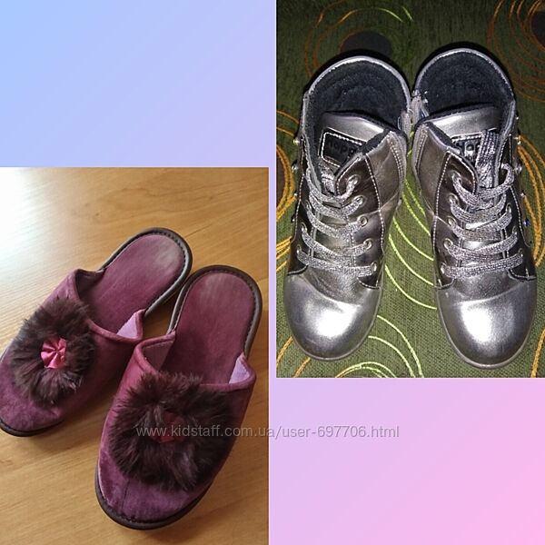 Подробное описание: Сріблясті чобітки 30 р плюс кімнатні тапочки в подарунок