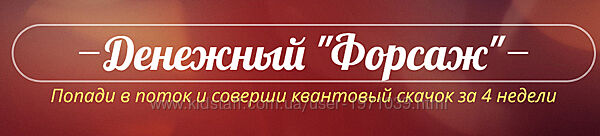 Денежный «Форсаж». (Катрин Форс) Для кого этот курс Для зеленых новичков - все ясно и понятно, обретете очень положительный первый опытДля тех, кто давно в практиках - авторские техники и подходДля профессиональных коучей - вы найдете новые инструментыДля мужчин и женщинДля скептиков и верующихДля тех, кто устал бегать по кругуКто готов сделать РывокКто устал завидовать окружающим и сравнивать себя со знакомыми из инстаграммаКто хочет перестать выполнять ненавистную работу Кто хочет заниматься только тем, что ему нравитсяКто устал мечтать бесплодноКто хочет эффективнее прожить эту жизньКто хочет быстрого изменения жизненной ситуацииКто хочет расквитаться с долгами и начать жить.Кто хочет выйти на новый уровень общенияЧто даст курс форсаж Научитесь быстро и эффективно исполнять любые свои мечты и желания;Получите в руки самые эффективные, традиционные и новейшие техники реализации желаемого и решения любой проблемы;Ваш денежный канал расширится - долги, кредиты, финансовые, материальные проблемы решатся;Начнете получать неожиданные подарки, бонусы, находить на улице деньги и получать выгодные предложения по работе;Значительно улучшится физическое здоровье и самочувствие;Ваш внешний вид улучшится - похорошеете и похудеете, если это Вам надо;Найдете свое предназначение и смысл жизни;Определитесь со своими целями и желаниями;Обретете долгожданную любовь;Научитесь в прямом смысле растягивать и сжимать время;Получите гигантское количество выгрузок не эффетивных и загрузку эффективных программ и убеждений;Наладите взаимоотношения с детьми, родственниками, друзьями, близкими и окружающими Вас людьми;Станете удачливым и счастливым человеком...Какие цели закрылись у студентов уже на текущем курсе? ДОХОД УВЕЛИЧИЛСЯ В 4 РАЗАКупила машину мечтыМуж нашел работуМуж начал зарабатывать в 2 раза большеНашли свое предназначениеЗапустили новый бизнесПерестала заниматься уборкой/готовкойПохудела на 8 килограммВыиграли в лотереюНачали получать дорогие подаркиИзменилось окружениеСтали счастливее
