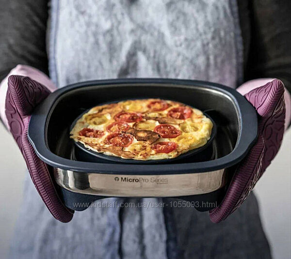 Можна використовувати як у мікрохвильовій печі, так і в духовці з Силіконовим листом.