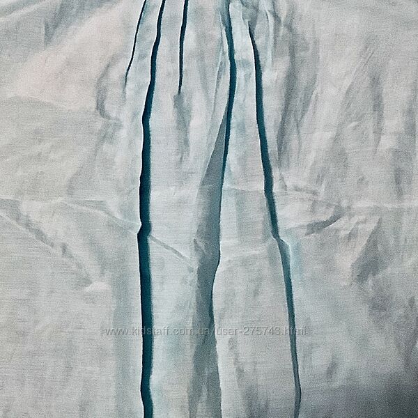 Блузка красивого нежно-голубого цвета, с коротким рукавом. Горловина оформлена руликом, с драпировкой. На груди заложены складочки. Низ блузки присобран на резинке.