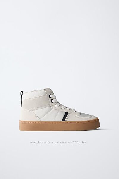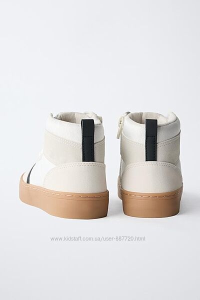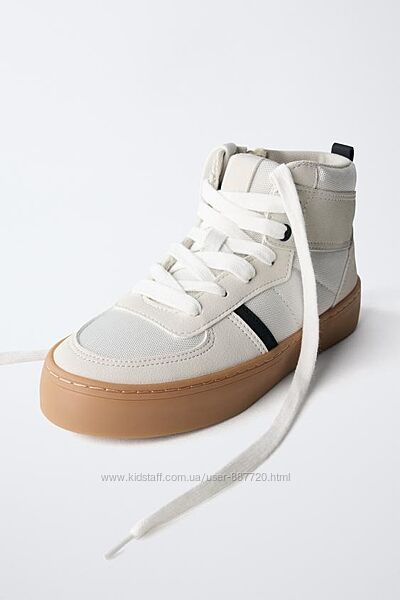 Стильні високі кросівки для хлопчиків від Zara (Іспанія). Легкі і комфортні! Зручна застібка блискавкою з внутрішньої сторони. М´яка устілка. Прошита поліуретанова підошва з фірмовим логотипом Zara. Чудова якість!Склад: текстиль + еко-шкіра.