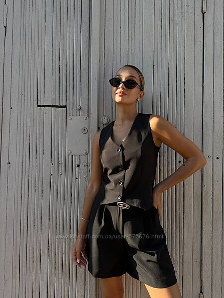 ➖Стильний костюм для будь-якого заходу. Комфортна довжина шорт, висока посадка, з кишенями.Жилет на гудзиках, ідеальна посадка. Якісне пошиття.
