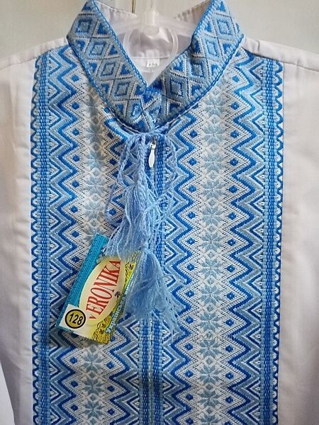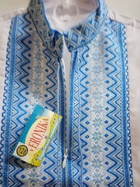 Вишиванки для хлопчика гобілен . Розмір 128.Нові, гарної якості вишиванки для хлопчика. Розмір 128. З переду сорочка застібається на блискавку (див. фото). Манжет на гудзику. Склад тканини змішаний. Вишивка гобілен. Виробник т.м. Veronika. Україна.