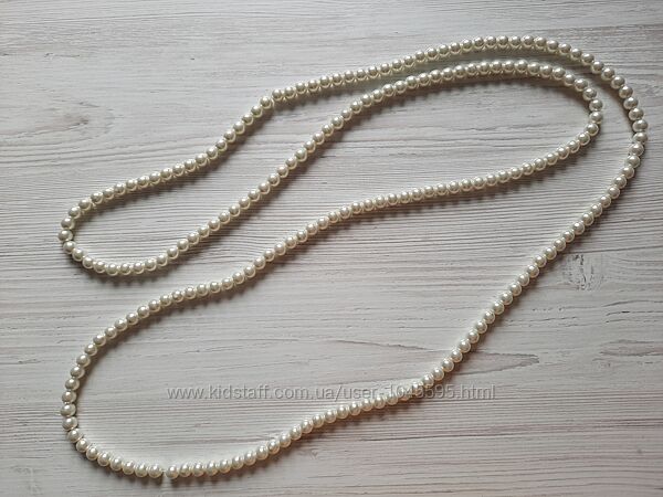 состояние идеал без дефектов жемчуг искусственный, светлый, округлой формы общая длина по окружности 209 см диаметр 1 жемчужины 8-9 мм нанизано на леску, без застежек, надевается через голову