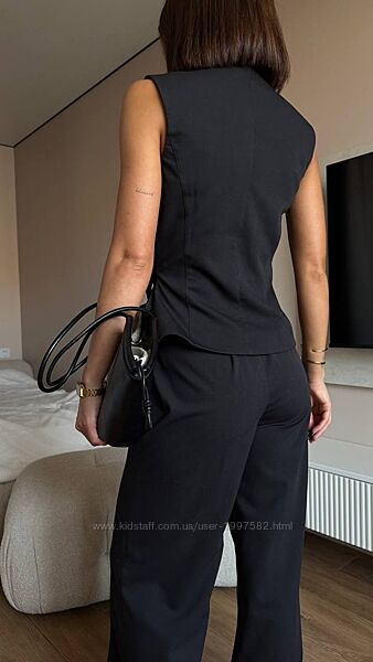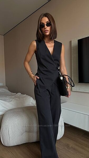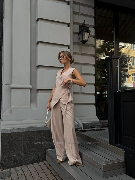 Подробное описание: Костюм із завязками на талії. Для тих, хто любить класику з деталями. Жиле
