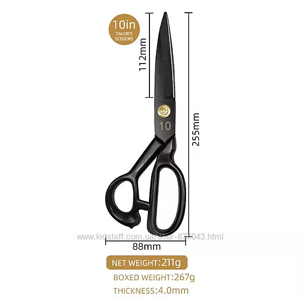 Кравецькі професійні ножиці Senior Tailor Scissors з лезом 255 мм 10" призначені для вирізання деталей із тканин і м´якої та середньої щільності шкіри.Загальна довжина ножиць - 255 мм,