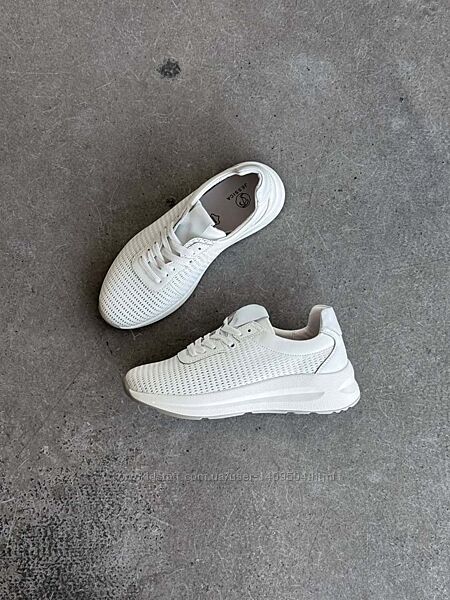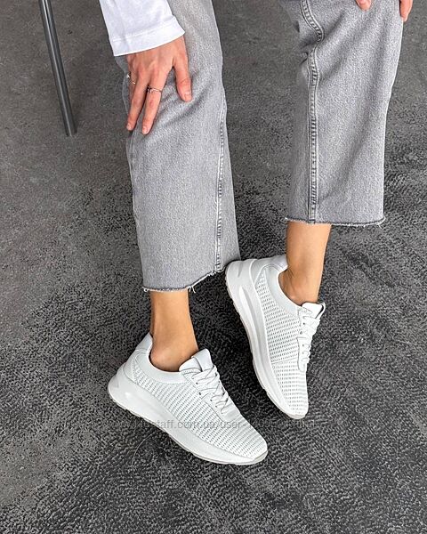 Стильні жіночі кросівки, виконані з натуральної шкіри. Легенькі та гнучкі, підошва не відчувається. Завдяки наскрізним отворам взуття чудово вентилюється, забезпечуючи комфорт навіть у спекотні дні. Ідеальний варіант для активних прогулянок та повсякденного стилю.