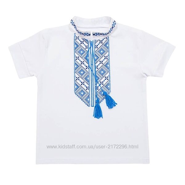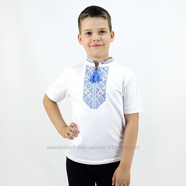 Подробное описание: Біла вишиванка для хлопчика, короткий рукав, на зріст від 98 до 134 см