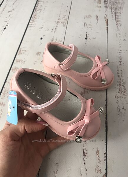 Пошиті з сучасної екошкіри ніжного рожевого кольору з перламутровим блиском та милим бантиком в якості декоруВсередині дихаюча незнімна устілка з натуральної шкіри із супінатором, яка разом з твердим задником забезпечують стопі анатомічно правильне положення
