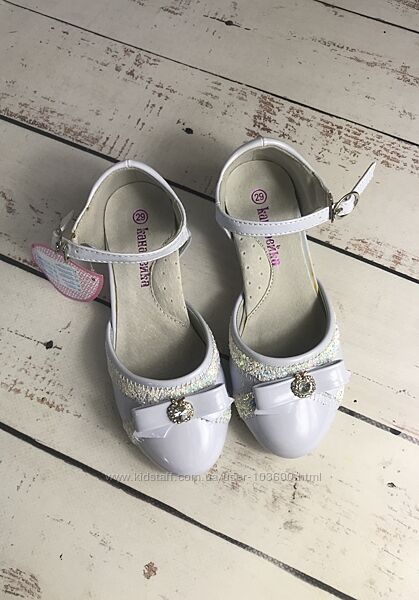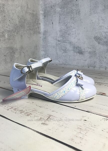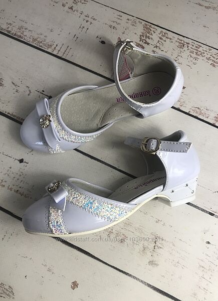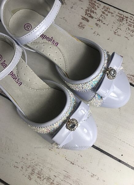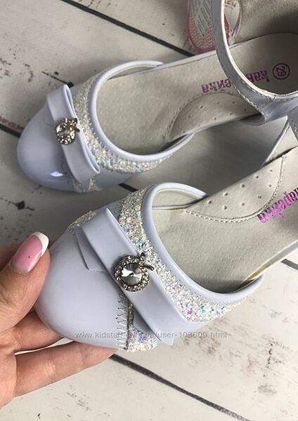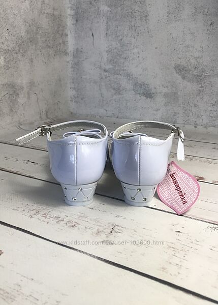 Створені з лакованої штучної шкіри ніжного блакитного кольору, яка надає взуттю святкового та ошатного вигляду, що добре підходить до урочистих подій або святкових виступів, з урахуванням будови дитячої стопиВзуття із супінатором, шкіряною устілкою, твердим задником та легкою не ковзною підошвою з гуми, що дуже важливо для дитячої ніжки, яка ще не сформувалась
