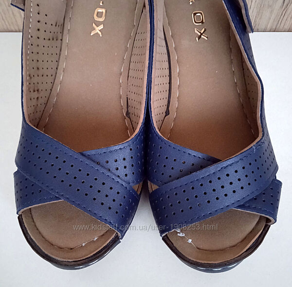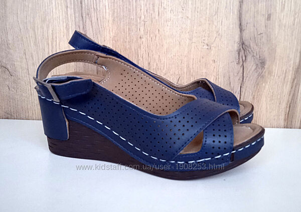 Подробное описание: Нові жіночі босоніжки, зручні сандалі сині перфоровані на танкетці, р 35-37