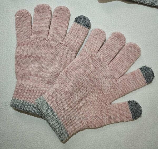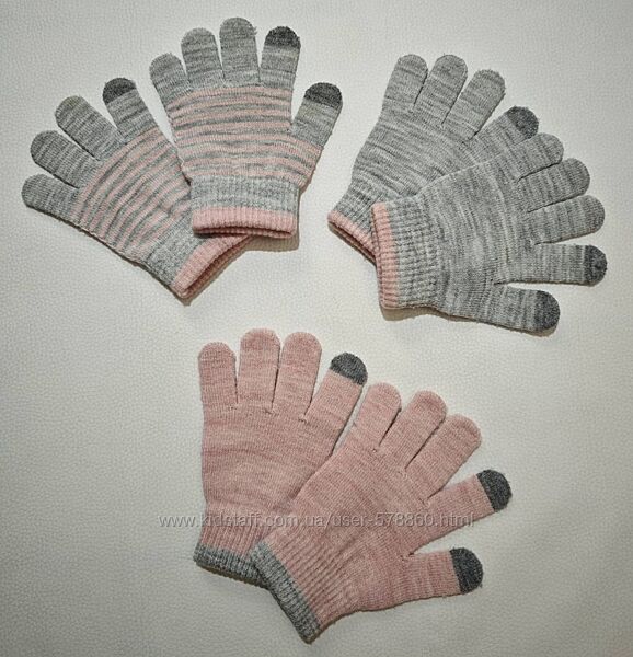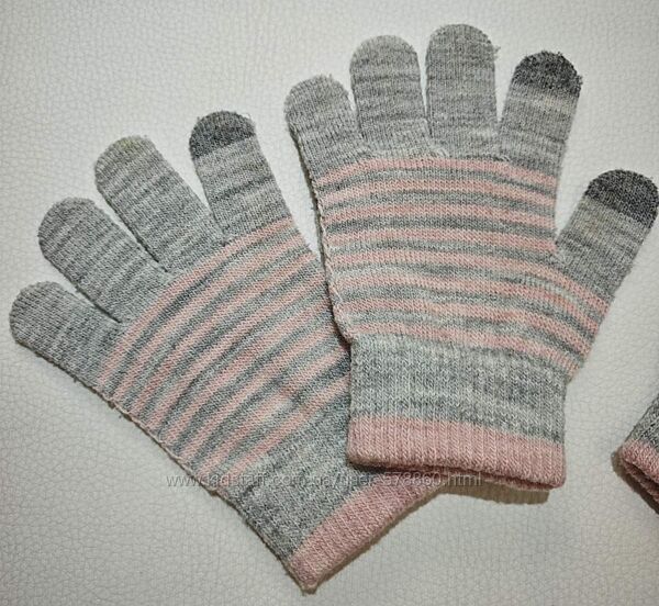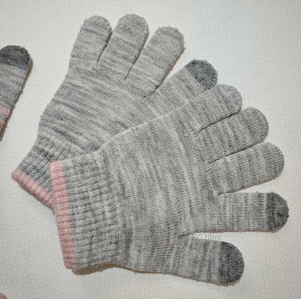 Рожево-сірі рукавички Next для дівчинки у розмірі 7-10 років.Стан відмінний.