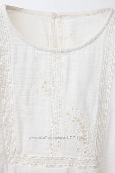 Рубашка с круглым вырезом и длинными рукавами, отделанными резинкой. Застёжка-капля на пуговицу сзади. Эластичный нижний край и аппликация в виде банта. Вышивка.-148 см довжина 47 см шир під пахвами 42 см рукав від горловини 58 см по внутрішньому шву 37.5 см
