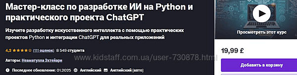 Udemy Мастер-класс по разработке ИИ на Python и практического проекта ChatGPT (2025)В этом курсе вы научитесь: