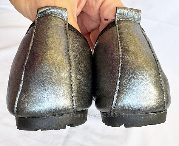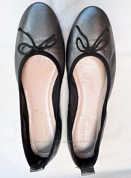 893. Супер- м´які, гнучкі та зручні, наче капці, балетки італійського бренда "Le Ballerine" (виготовляються в Італії) в ідеальному стані без недоліків: абсолютно чисті устілки, підошва без зносу - просто пару раз акуратно взутіКолір темне срібло з перламутром